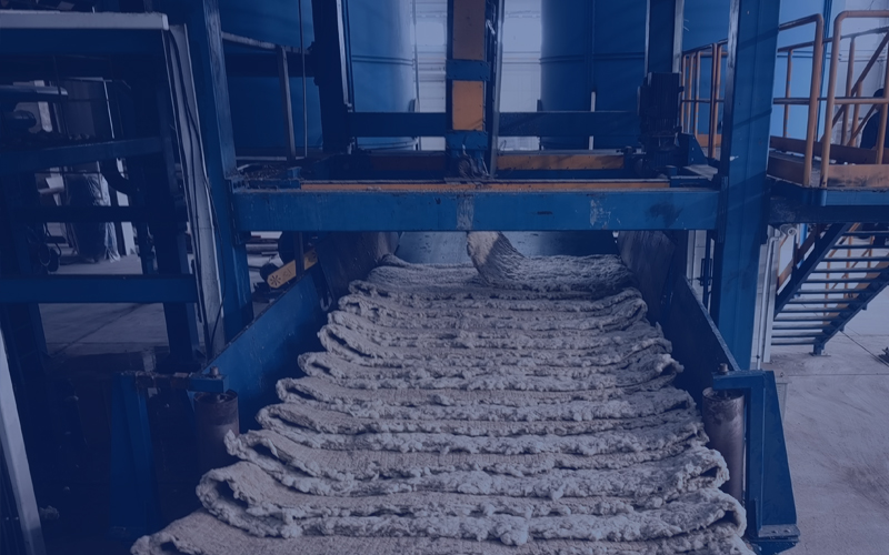 stone wool fibers from the spinning machine onto a conveyor belt, forming a uniform layer of