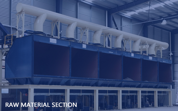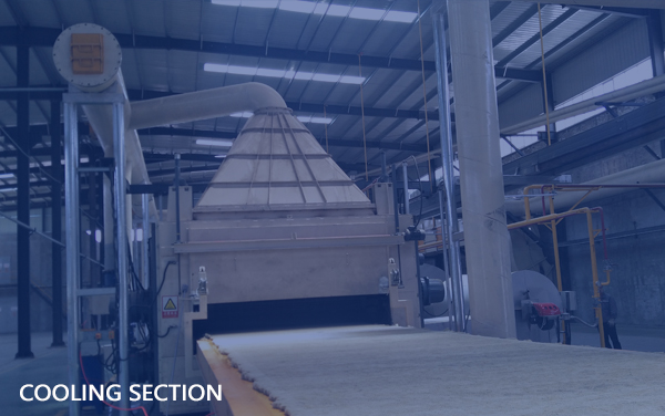 RAW MATERIAL SECTION | MELTING SECTION | FIBERIZATION SECTION | FORMING SECTION